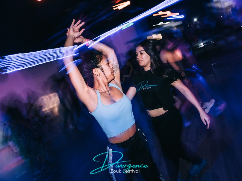 If you haven’t been introduced to the technique of passive leading yet, it’s the practice of creating space for the follower to fill, rather than exerting a push or pull force on the followers body. So for example, if you are walking backwards and want the follower to come with you, you could pull them by the hands or hug them and just take them with you, both of which are active leading, OR you could offer your palms to the follower and invite them to keep the connection (passive leading). In the example on my shirt, active leading would be holding the ribcage with the palms and physically tilting it backwards, whereas passive leading would be tilting your palms away from the ribcage, inviting the follower to fill the space. (I couldn’t find an image of us doing this for the shirt, don’t come for me lol). And let me be clear, there is nothing wrong with active leading as long as you are using the appropriate amount of force (hint: way less than you think) in the correct placement and direction. In fact, some movements in Zouk require active leading (think spins, counterbalances, or anything with elasticity) . However, we can lead passively much more often than you think and I would encourage leaders to explore this more in their practice, especially when it comes to head movement. Not only is it safer and more comfortable, but it empowers the follower to rely on their technique (rather than relying on very direct instruction from the leader), to execute the head motion in a way that fits their body, and to be a more active follower in general.